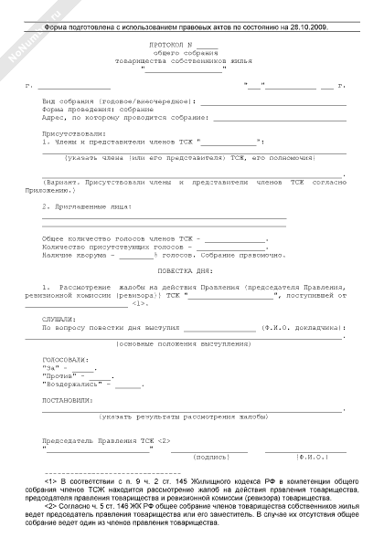 - 870Протокол общего собрания членов товарищества собственников жилья о рассмотрении жалоб на действия правления товарищества, председателя правления товарищества и ревизионной комиссии (ревизора) товарищества