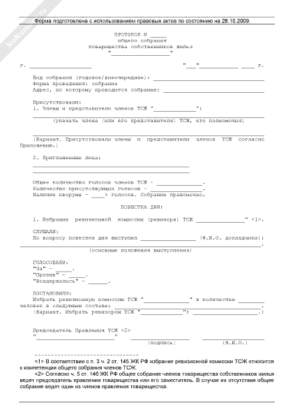 - 872Протокол общего собрания членов товарищества собственников жилья об избрании ревизионной комиссии (ревизора) товарищества
