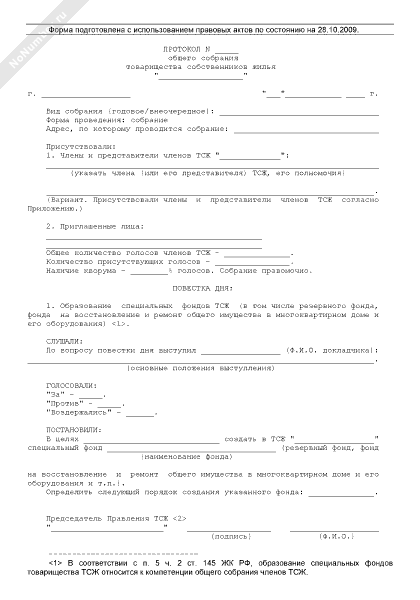 - 873Протокол общего собрания членов товарищества собственников жилья об образовании специальных фондов товарищества