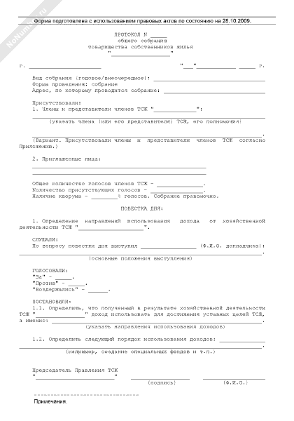 - 874Протокол общего собрания членов товарищества собственников жилья об определении направлений использования дохода от хозяйственной деятельности товарищества