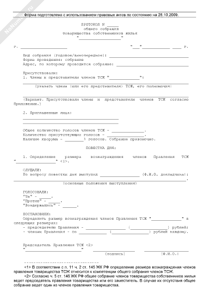 - 875Протокол общего собрания членов товарищества собственников жилья об определении размера вознаграждения членов правления товарищества