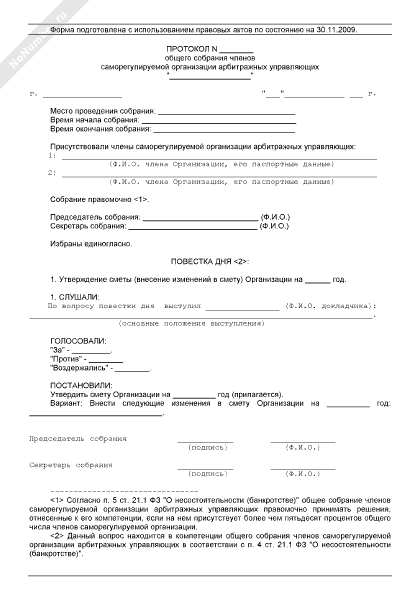 - 906Протокол общего собрания членов саморегулируемой организации арбитражных управляющих по вопросу утверждения сметы саморегулируемой организации, внесения в нее изменений
