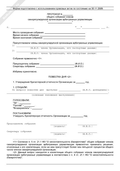 - 907Протокол общего собрания членов саморегулируемой организации арбитражных управляющих по вопросу утверждения бухгалтерской отчетности саморегулируемой организации
