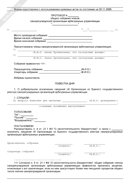 - 908Протокол общего собрания членов саморегулируемой организации арбитражных управляющих по вопросу принятия решения о добровольном исключении сведений о саморегулируемой организации из Единого государственного реестра саморегулируемых организаций арбитражных управляющих
