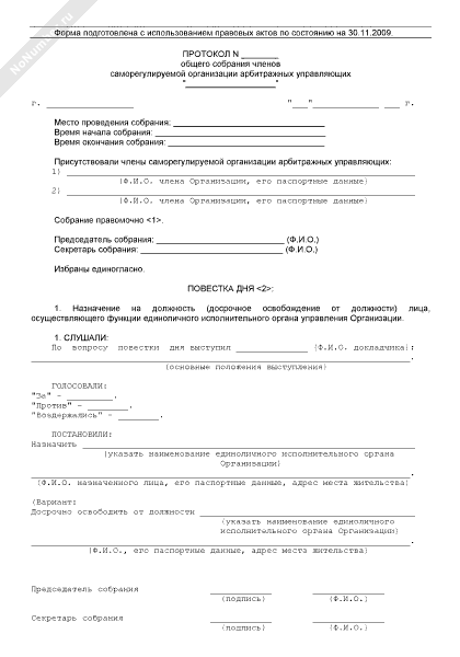 - 903Протокол общего собрания членов саморегулируемой организации арбитражных управляющих по вопросу назначения на должность (досрочного освобождения от должности) лица, осуществляющего функции единоличного исполнительного органа управления организации
