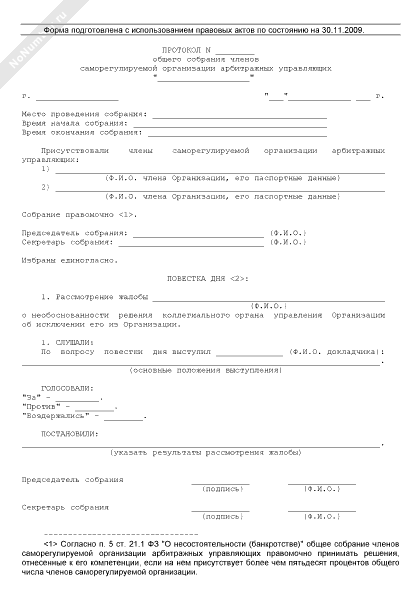 - 904Протокол общего собрания членов саморегулируемой организации арбитражных управляющих по вопросу рассмотрения жалобы лица, исключенного из членов саморегулируемой организации, на необоснованность решения об исключении этого лица из членов саморегулируемой организации и принятия решения по такой жалобе