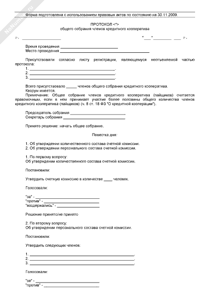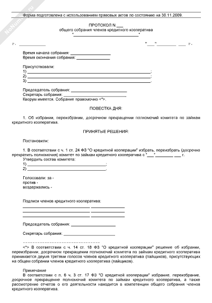- 982Протокол общего собрания членов кредитного кооператива по вопросам избрания, переизбрания, досрочного прекращения полномочий комитета по займам кредитного кооператива
