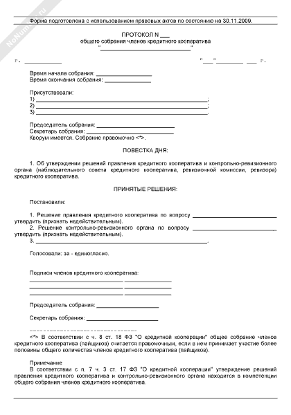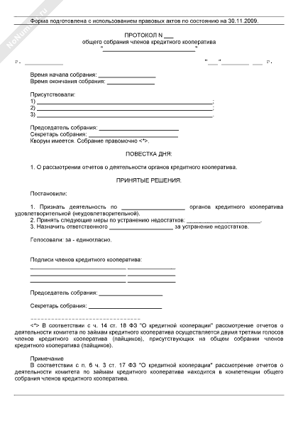 - 983Протокол общего собрания членов кредитного кооператива по вопросам рассмотрения отчетов о деятельности органов кредитного кооператива