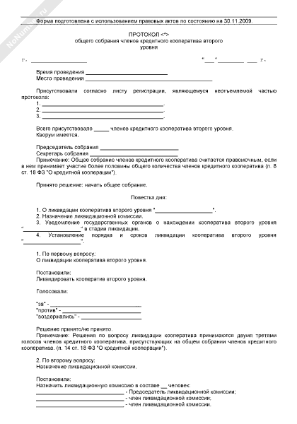 - 990Протокол общего собрания членов кредитного кооператива второго уровня о ликвидации кооператива