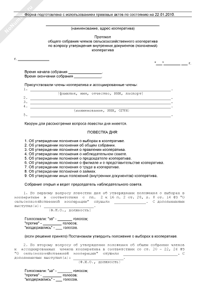 - 1014Протокол общего собрания членов сельскохозяйственного кооператива по вопросу утверждения внутренних документов (положений) кооператива