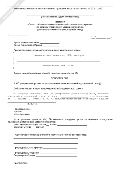 - 1017Протокол общего собрания членов сельскохозяйственного кооператива по вопросу утверждения устава кооператива, внесения изменений и дополнений к нему