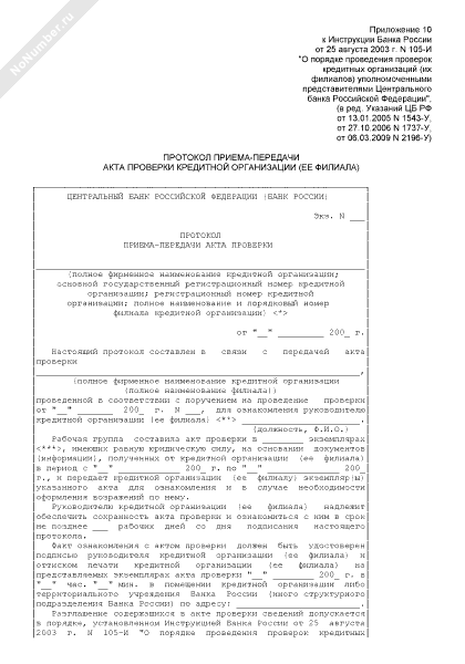 - 1165Протокол приема-передачи акта проверки кредитной организации (ее филиала)