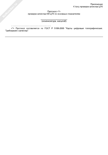 - 1173Протокол проверки качества номенклатурных листов цифровых топографических карт по основным показателям (приложение к акту проверки качества номенклатурных листов цифровых топографических карт, изготовленных по государственному контракту для федеральных государственных нужд ФГУП «Госгисцентр»)