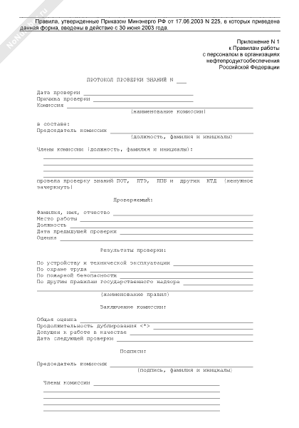 - 1175Протокол проверки знаний норм, правил, инструкций