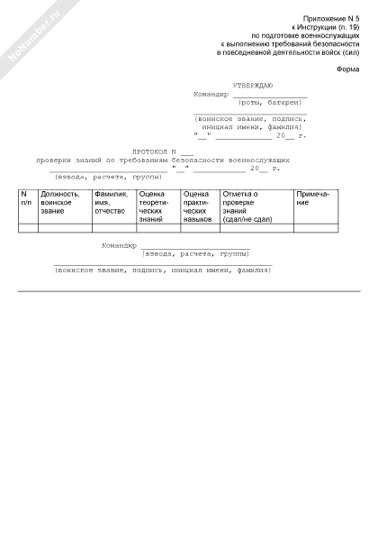 - 1180Протокол проверки знаний по требованиям безопасности военнослужащих (взвода, расчета, группы)