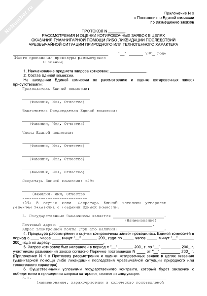 - 1243Протокол рассмотрения и оценки котировочных заявок на участие в предварительном отборе в целях составления перечня поставщиков для размещения у них заказа на поставки продукции, выполнение работ, оказание услуг, необходимых для оказания гуманитарной помощи либо ликвидации последствий чрезвычайных ситуаций природного или техногенного характера