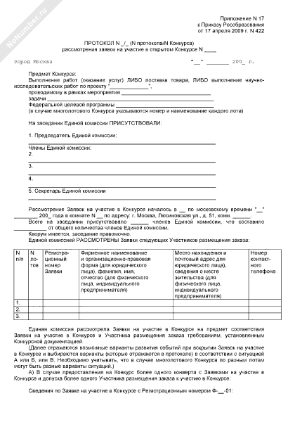 - 1251Протокол регистрации участников конкурса на право заключения договора подряда на обслуживание жилых домов (форма № 4)