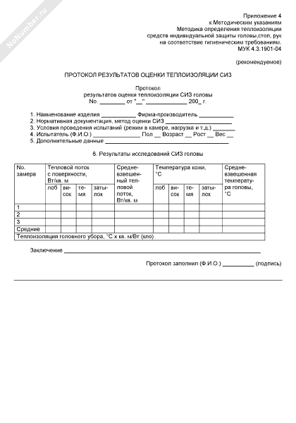 - 1258Протокол результатов оценки теплоизоляции средств индивидуальной защиты головы