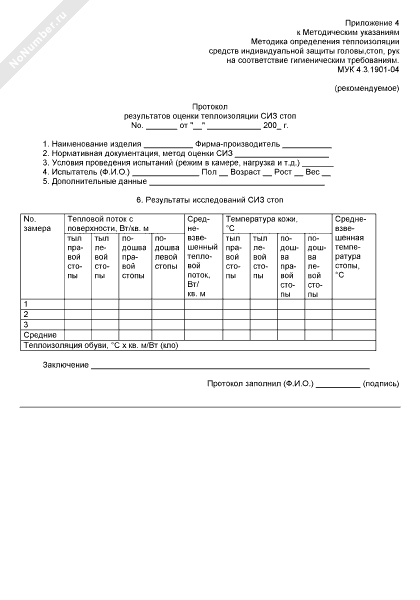 - 1257Протокол результатов оценки теплоизоляции средств индивидуальной защиты стоп