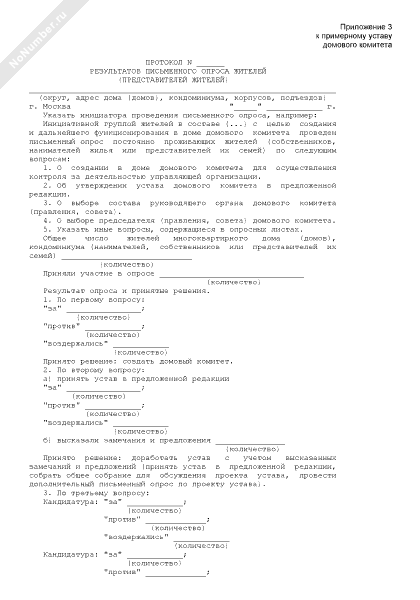 - 1259Протокол результатов письменного опроса жителей (представителей жителей) (приложение к примерному уставу домового комитета)