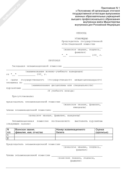 - 1260Протокол результатов сдачи аттестационных испытаний выпускниками военных образовательных учреждений высшего профессионального образования внутренних войск Министерства внутренних дел Российской Федерации