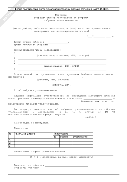 - 1321Протокол собрания членов сельскохозяйственного кооператива по вопросу избрания уполномоченного