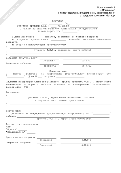 - 1322Протокол собрания жителей дома городского поселения Мытищи по выборам делегата конференции (учредительной конференции) территориального общественного самоуправления