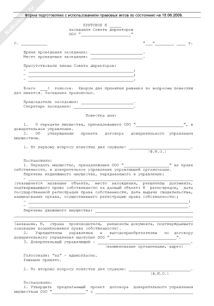 - 1323Протокол совета директоров общества с ограниченной ответственностью о передаче имущества общества в доверительное управление