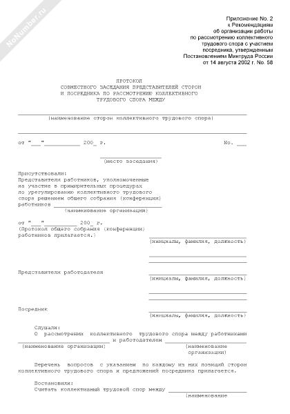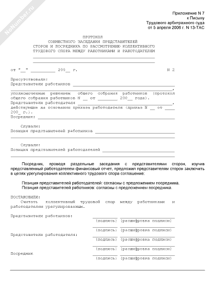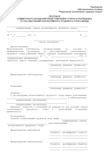 - 1330Протокол совместного заседания представителей сторон и посредника по рассмотрению коллективного трудового спора