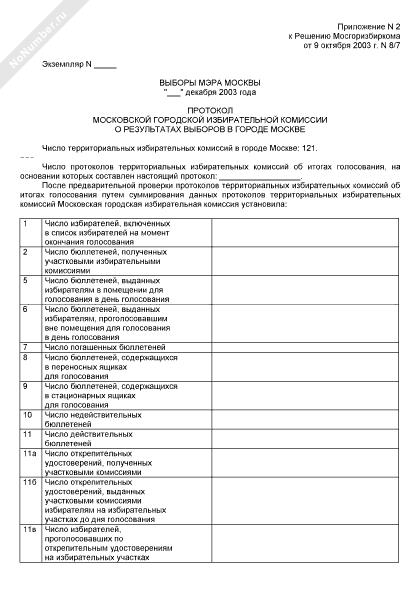 Протокол городской избирательной комиссии о результатах выборов Мэра в городе Москве (рекомендуемый образец заполнения)