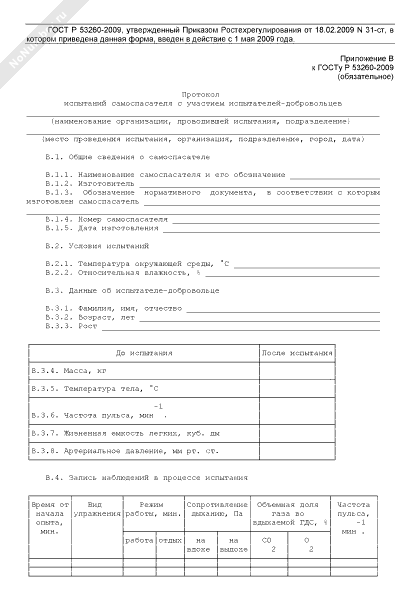Протокол испытаний самоспасателя с участием испытателей-добровольцев