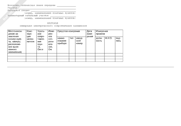 Протокол измерения электрического сопротивления заземления