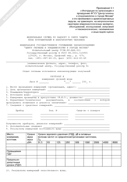 Протокол измерения уровней шума