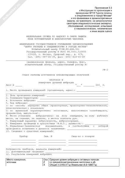 Протокол измерения уровней вибрации. Форма № УФ-2