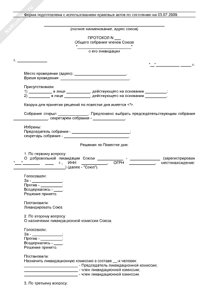 Протокол общего собрания членов союза о его добровольной ликвидации