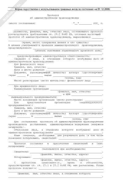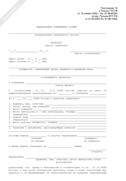 Протокол опроса свидетеля по делу об административном правонарушении (рекомендуемый образец заполнения)