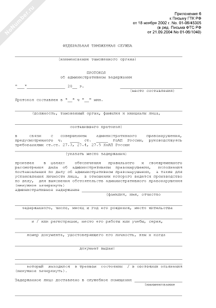 - Источник– Письмо ГТК РФ от 18.11.2002 № 01-06/45305 (редакция от 06.02.2006 № 01-06/3667)