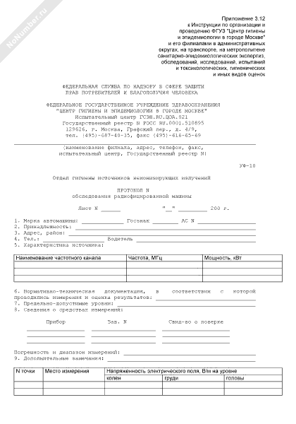 Протокол радиационного обследования (рекомендуемый образец заполнения)