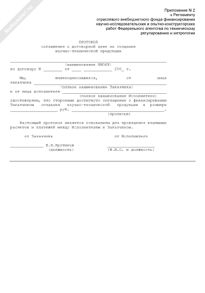 Протокол соглашения о договорной цене на создание научно-технической продукции (приложение к договору о финансировании научно-исследовательской и опытно-конструкторской работы)