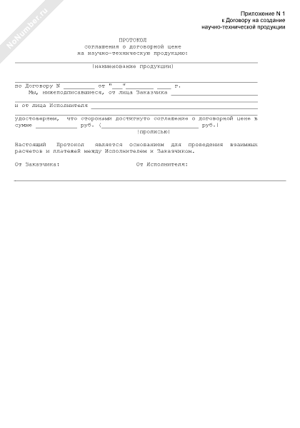 Протокол соглашения о договорной цене на научно-техническую продукцию (приложение к договору на создание научно-технической продукции)