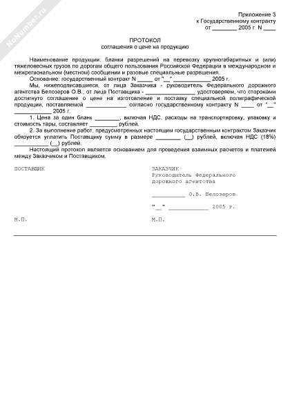 Протокол соглашения о цене на полиграфическую продукцию (приложение к государственному контракту на изготовление и поставку специальной полиграфической продукции)