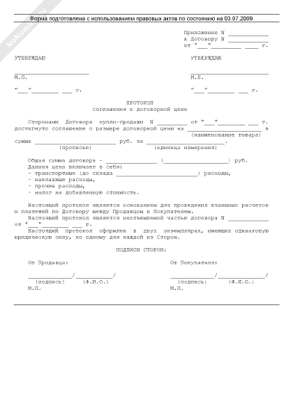 Протокол соглашения о цене (смете) (приложение к договору на выполнение проектно-изыскательских работ по землеустройству, земельному кадастру и мониторингу земель)