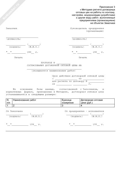 Протокол согласования договорной оптовой цены на работы по монтажу, настройке, модернизации (доработкам) и другие виды работ, выполняемые предприятиями (организациями) на объектах заказчика