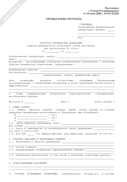 Протокол технических испытаний изделия медицинского назначения (набор реагентов для диагностики in vitro)