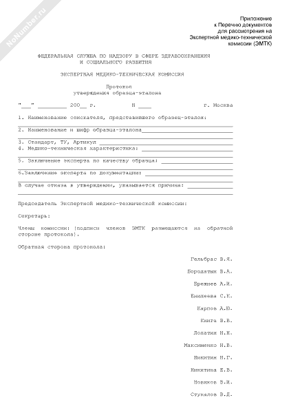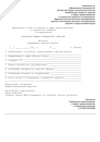 Протокол утверждения образца-эталона протезно-ортопедического изделия