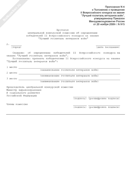 Протокол центральной конкурсной комиссии об определении победителей II Всероссийского конкурса на звание «Лучший госпиталь ветеранов войн» (рекомендуемый образец заполнения)