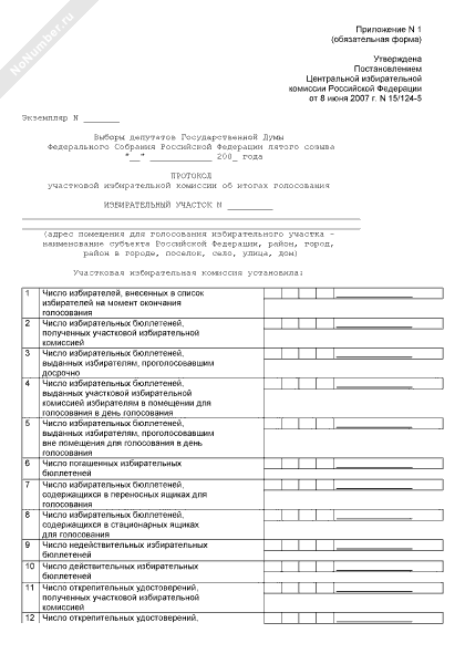 - Источник– Постановление Центризбиркома РФ от 08.06.2007 № 15/124-5