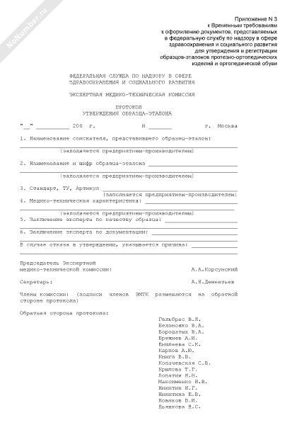 Протокол утверждения образца-эталона протезно-ортопедического изделия