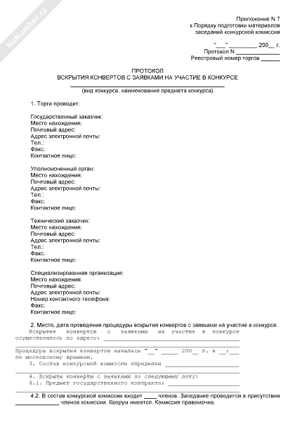 Протокол вскрытия конвертов с конкурсными заявками на участие в конкурсе по размещению государственного заказа (рекомендуемый образец заполнения)