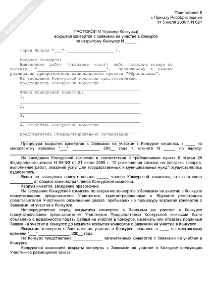 Протокол вскрытия конвертов с заявками на участие в конкурсе по открытому конкурсу, проводимому в рамках реализации приоритетного национального проекта «Образование» (рекомендуемый образец заполнения)